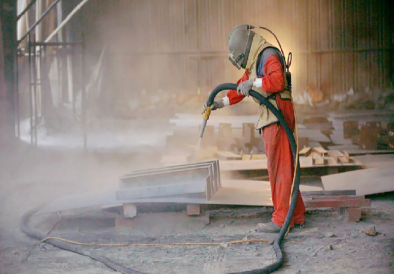 - All abrasive and dust from blasting operation shall be removed from surfaces before painting application, by brushing and sweeping.